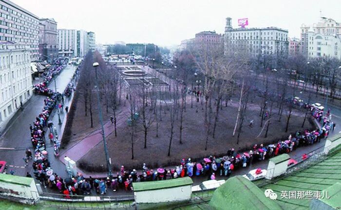 在莫斯科的普希金广场,人们经常排出了几公里长的队伍。