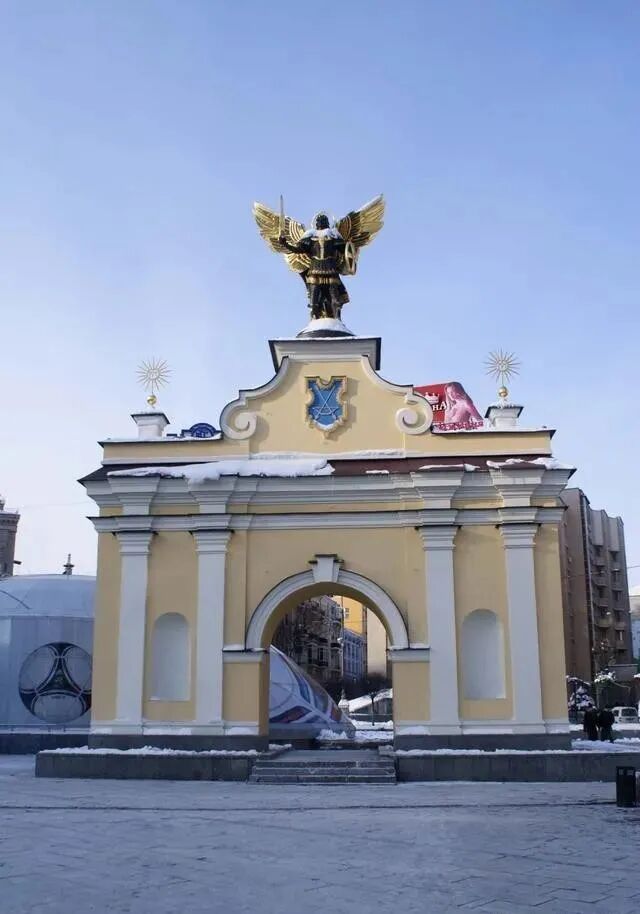 屹立在基辅市中心-独立广场中央的基辅城守护神 米哈伊尔大天使.