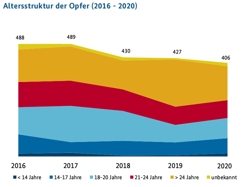 ✓ 406名受害者(比2019年减少4.9%)